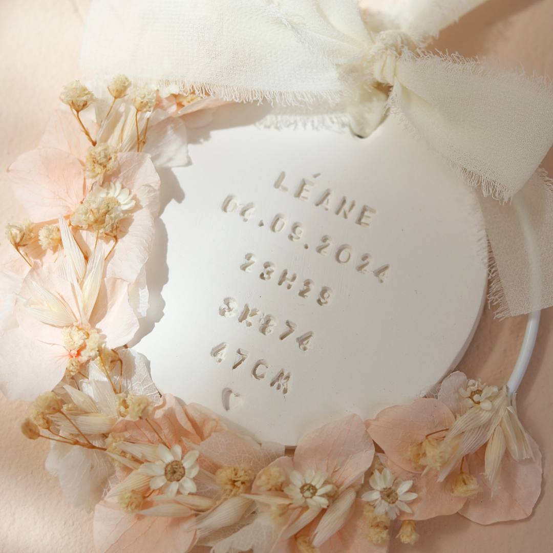 Ce médaillon personnalisé est créé pour immortaliser la naissance de votre bébé avec douceur et simplicité.