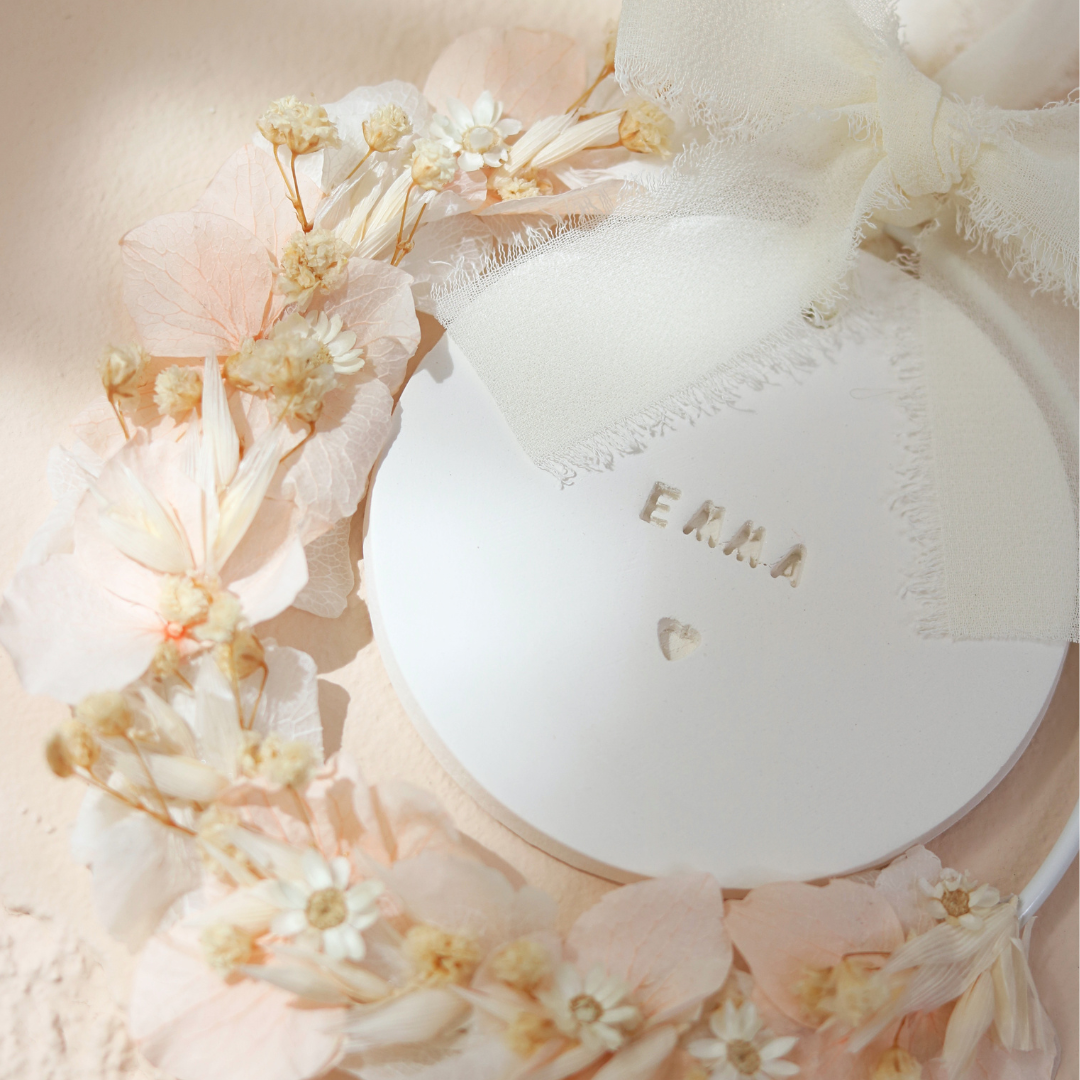 Ce médaillon personnalisé est créé pour immortaliser la naissance de votre bébé avec douceur et simplicité.